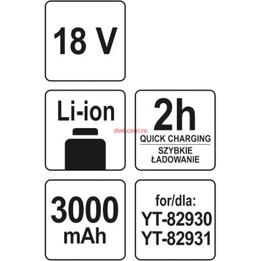 | Comanda instant - Acumulator litiu-ion 3000 mAh. Yato YT-82932
