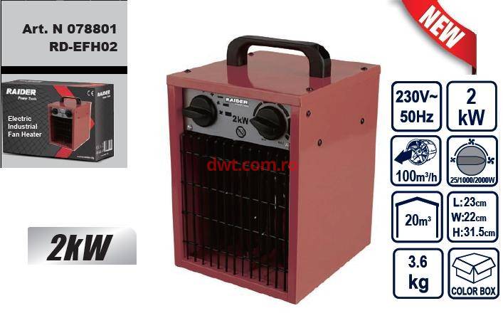 Aeroterma industriala patrata 2KW, Raider RD-EFH02 |