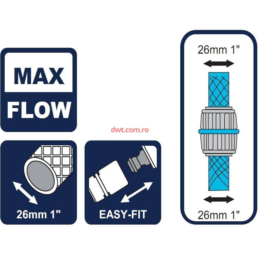 Conector furtun Aquacraft 550096, MAX-Flow, 1", ABS