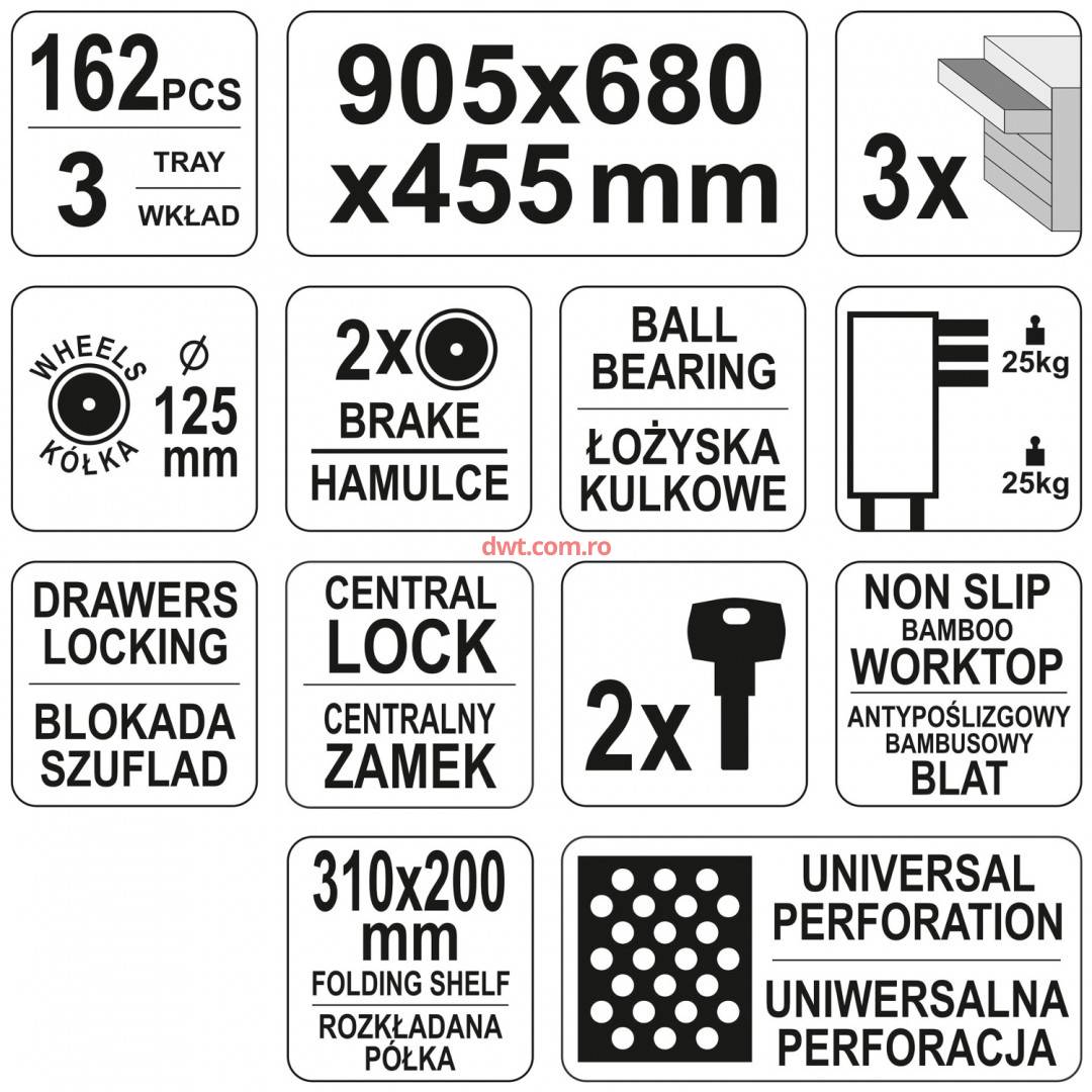| Comanda instant - Banc de lucru echipat 162 piese, Yato YT-55280