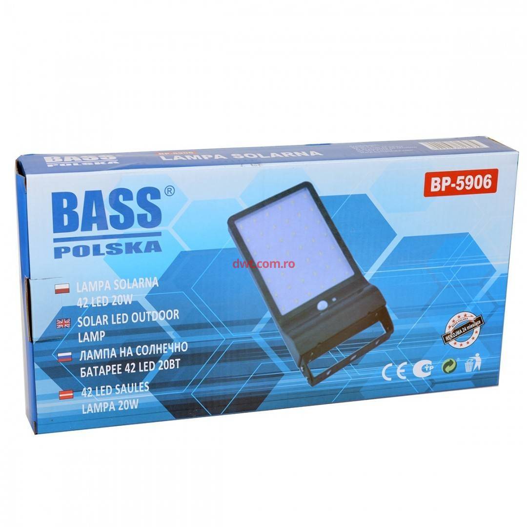 Comanda instant - BASS Polska BS-5906 Lampa tip proiector solar Bass BS-5906, putere 20W, 42 x Led, senzor miscare, IP65
