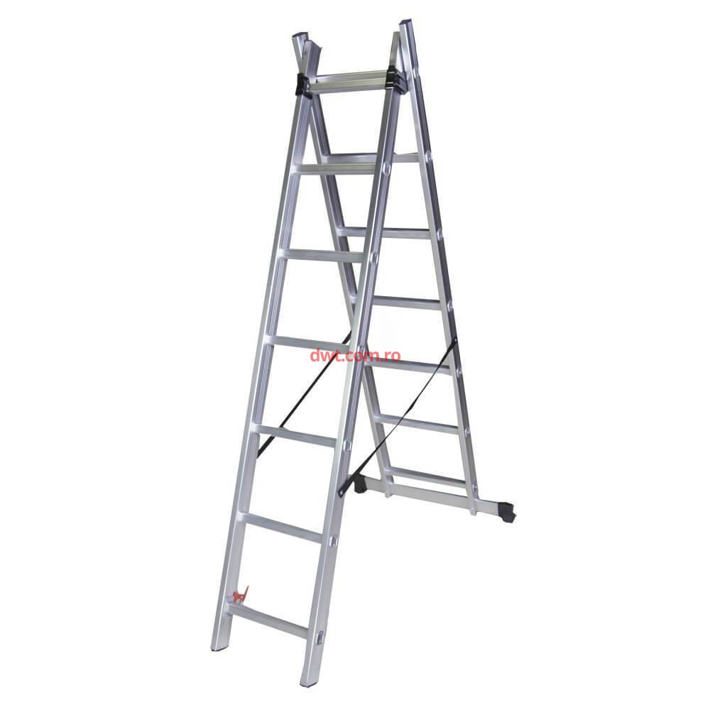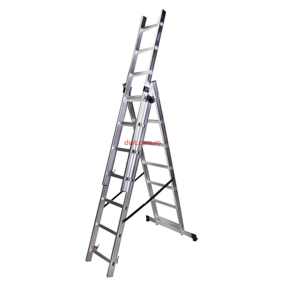 Scara 3 tronsoane, Bisonte STR307, 1.98m, aluminiu, 7 trepte
