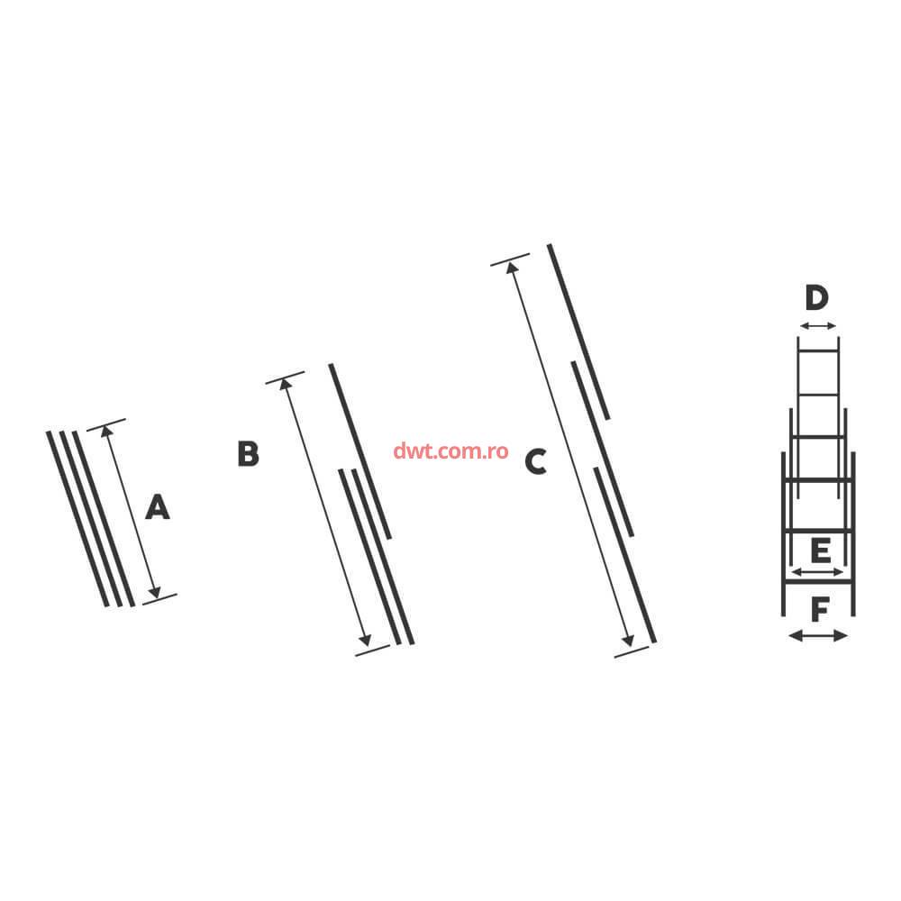 Bisonte STR307 Scara 3 tronsoane, Bisonte STR307, 1.98m, aluminiu, 7 trepte |