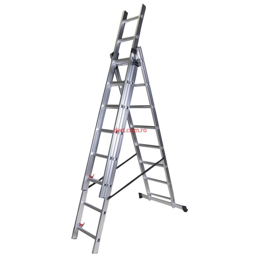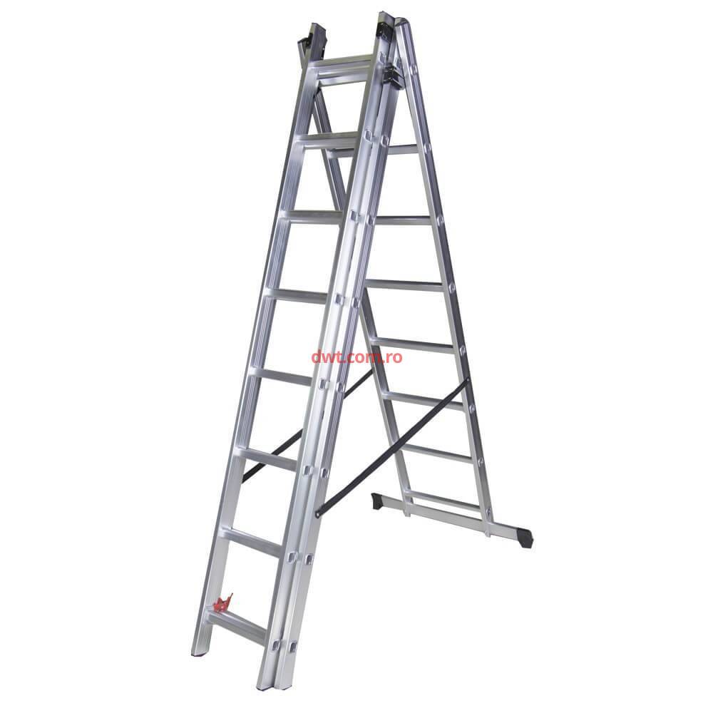 Scara cu 3 tronsoane STR308, 8 trepte, 2.25m, Aluminiu