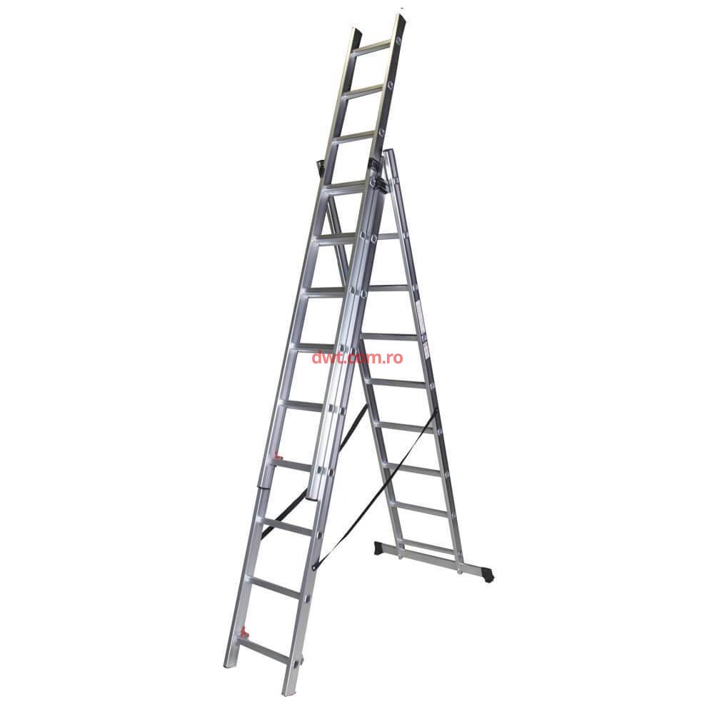 Comanda instant - Bisonte STR309 Scara tripla aluminiu, Bisonte STR309, 3×9 trepte, 253 cm