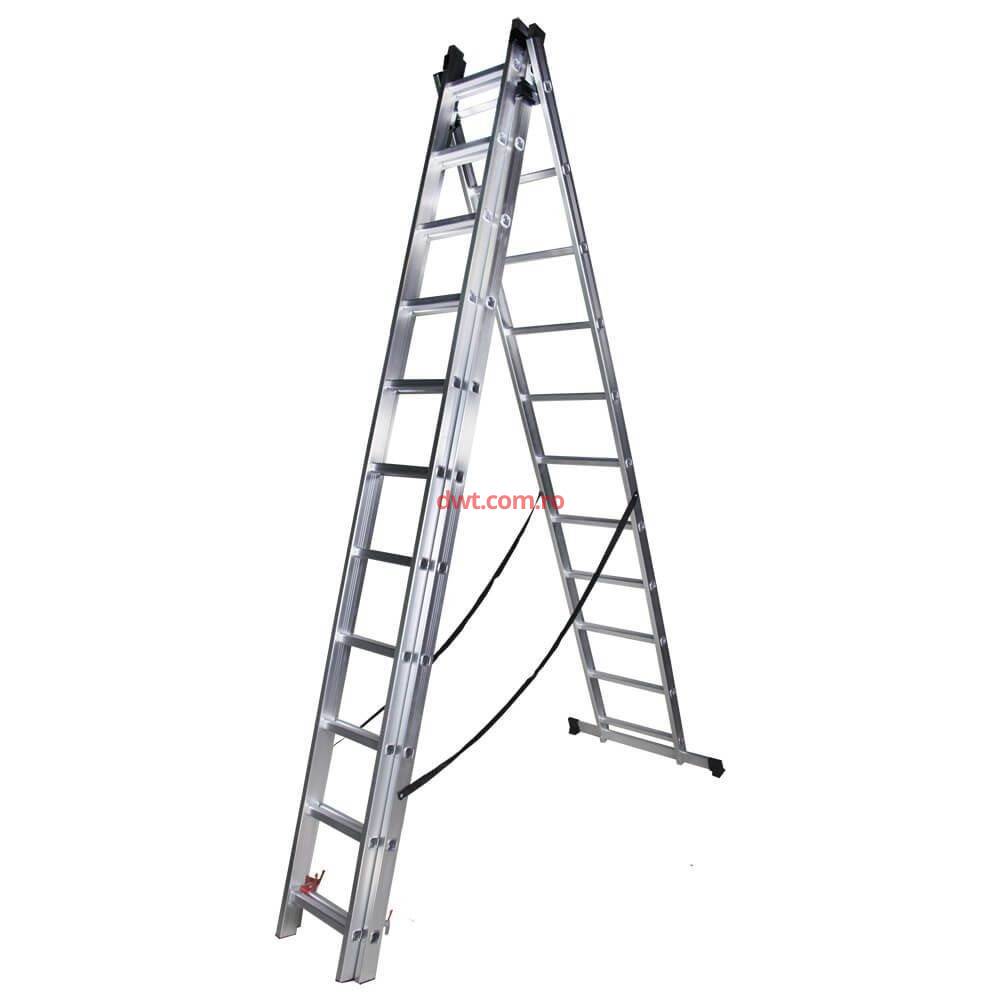 Scara cu 3 tronsoane STR311, 11 trepte, 3m, Aluminiu