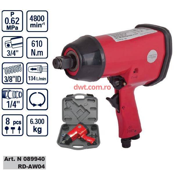 Cheie pneumatica de impact 3/4", 610Nm, Raider RD-AW04, |