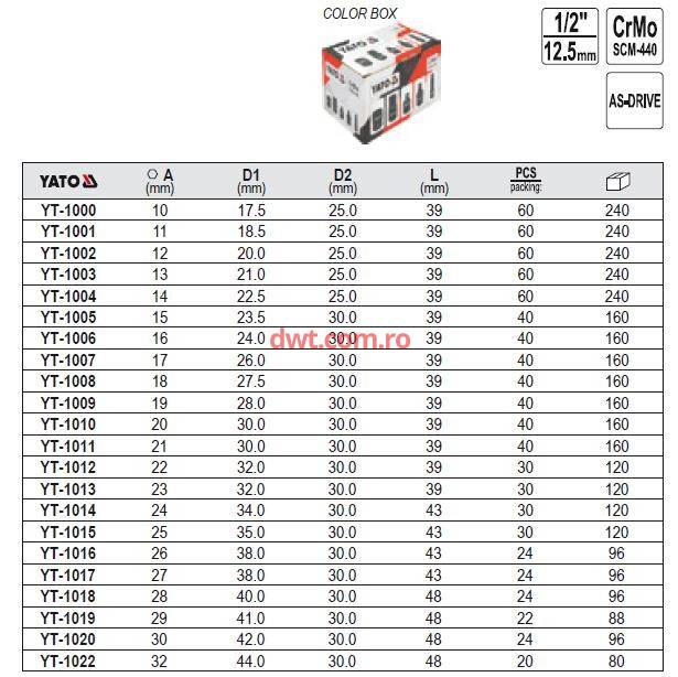 Durabilitate, manopera perfectă, materiale excelente, sunt caracteristici tehnice de înaltă calitate ale produselor YATO , a cărei ofertă acoperă trei domenii: servicii, construcții și grădină. Sculele YATO sunt folosite cu succes de către specialiști în mai multe sectoare ale economiei. Durabilitatea excepțională și rezistența predispun sculele YATO pentru utilizare în medii industriale grele și servicii. Caracteristici tehnice: Cheie tubulara hexagonala de impact Dimensiune hexagon: 20 mm Lungime cheie: 39 mm Diametru cheie: 30 mm Conector: patrat 1/2†(12,7 mm) Material CrMo SCM-440