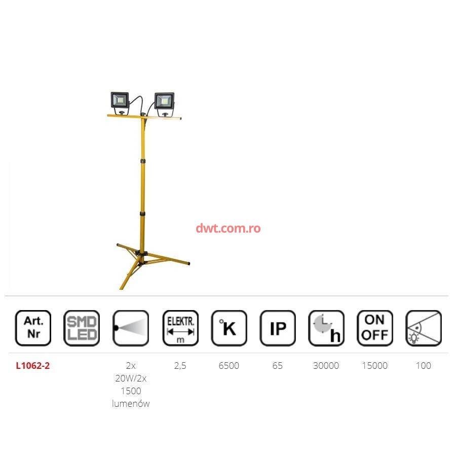 Proiectoare cu trepied Dedra L1062-2, Led, 2 x 20W, IP65, trepied