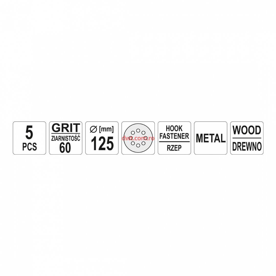 | Comanda instant - Discuri abrazive cu orificii 125mm GR60, 5 buc, Yato YT-83452