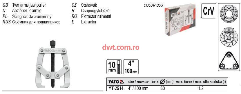 Extractor rulmenti cu 2 brate Yato YT-2514, dimensiune 100