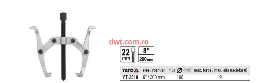Extractor rulmenti cu 2 brate Yato YT-2518, dimensiune 200 mm, Cr-V |