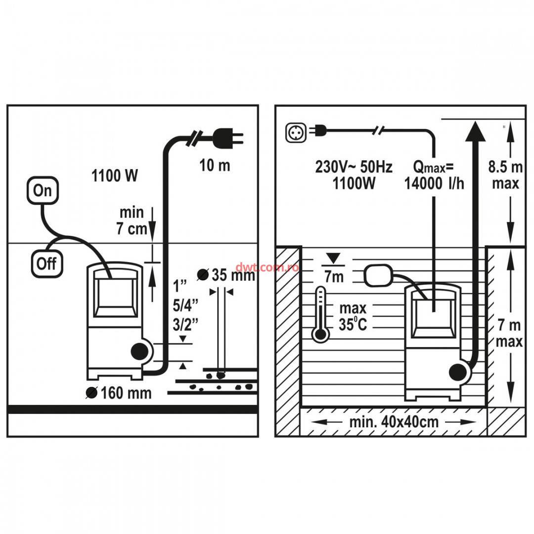 In timpul functionarii, pompa trebuie sa fie scufundata cel