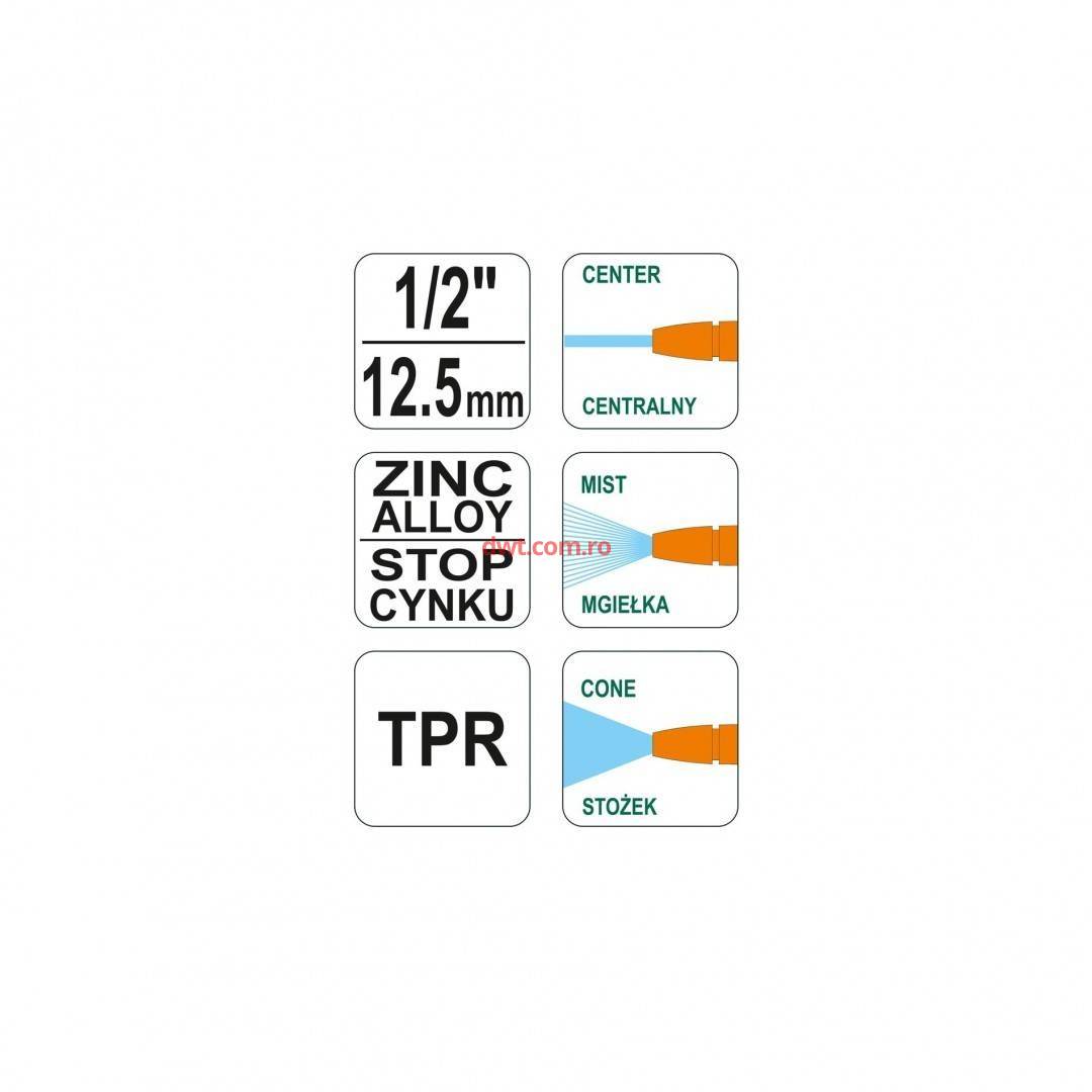 Pistol pentru stropit Flo 89190, cap metalic, 1/2, 3 functii
