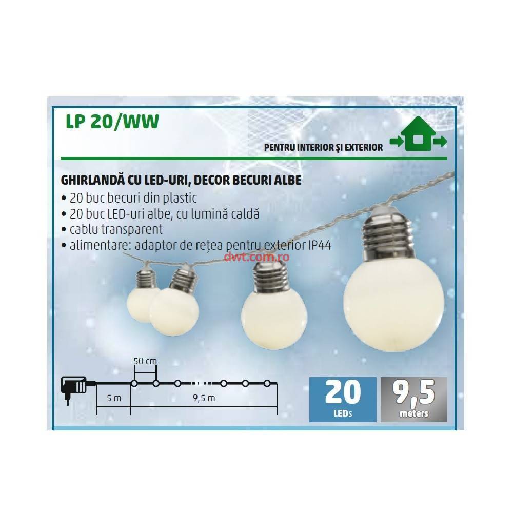 Comanda instant - Home LP 20/WW Ghirlandă cu LED-uri, decor globuri mate, 20 LED alb cald Home LP 20/WW, exterior