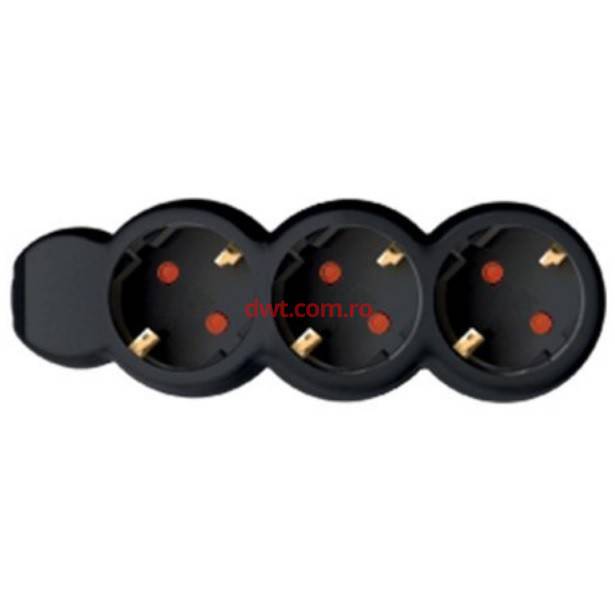 Prelungitor cu 3 locasuri, NV 3-3/B, lungime 3 m, negru, cu