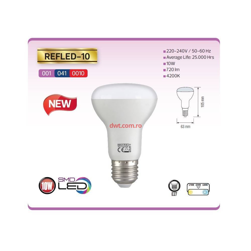 Bec reflector Led, Refled-10, putere 10 W, 720 lm, 4200k,