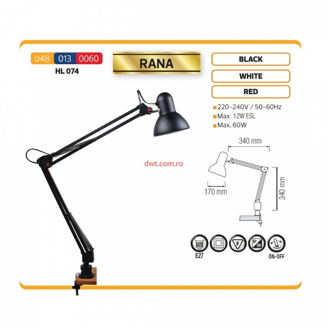 Lampa pentru birou, articulata Rana HL074, negru, E27, max.