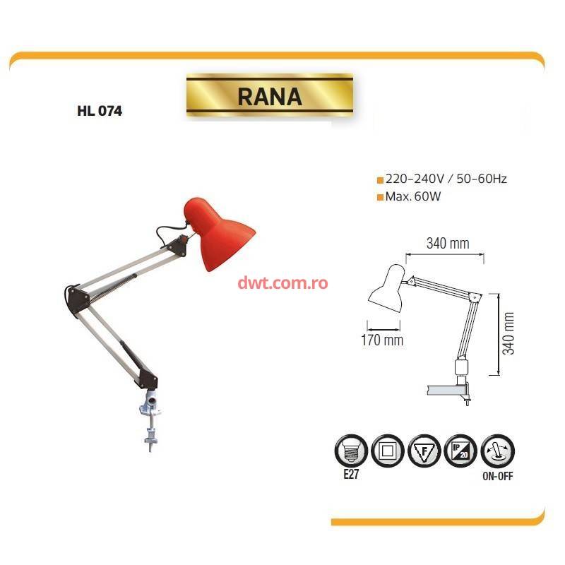 Lampa pentru birou, articulata Rana HL074, Rosu, E27, max.