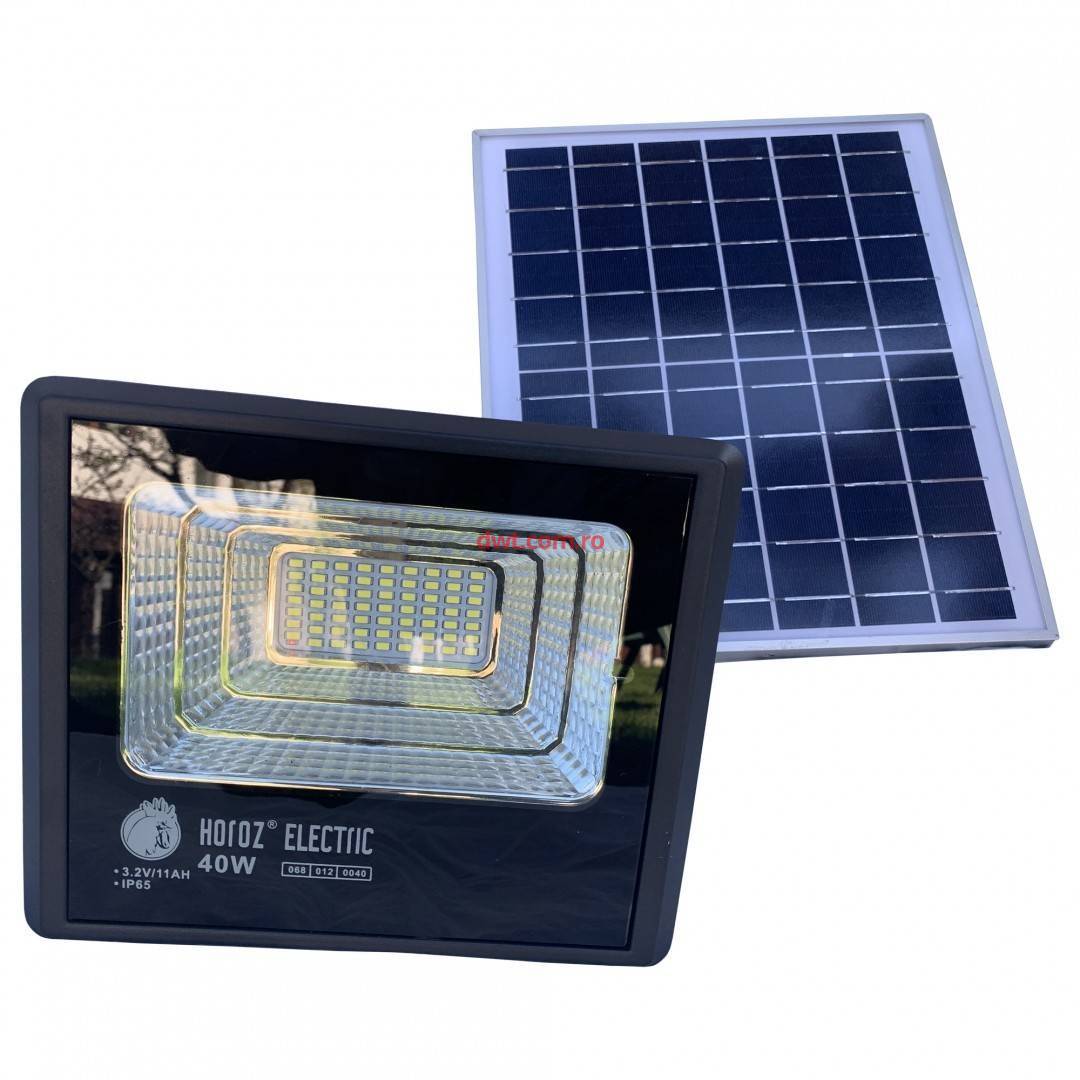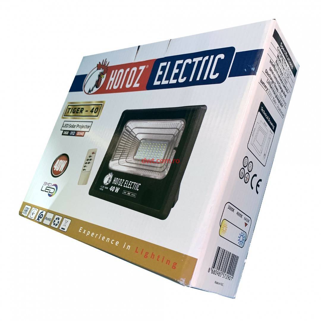 Comanda instant - Horoz 068-012-0040/6400K Proiector cu panou solar Tiger-40, Li-Ion, telecomanda, 40 W, 840 lm, lumina rece, IP65, aluminiu