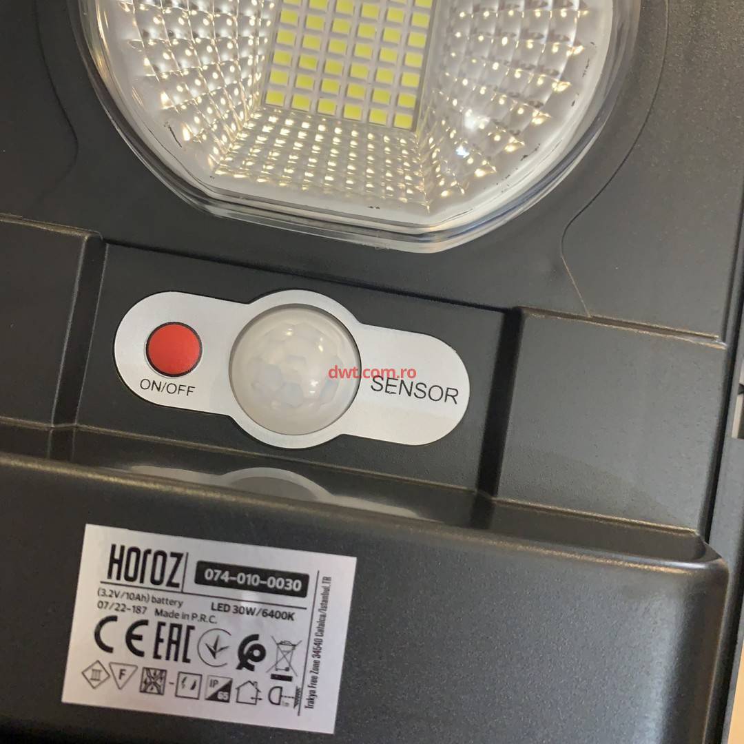 Comanda instant - Horoz 074-010-0030 Lampa solara Horoz Compact 30W, Li-Ion, 300 lm, senzor de miscare, IP65, 6400K