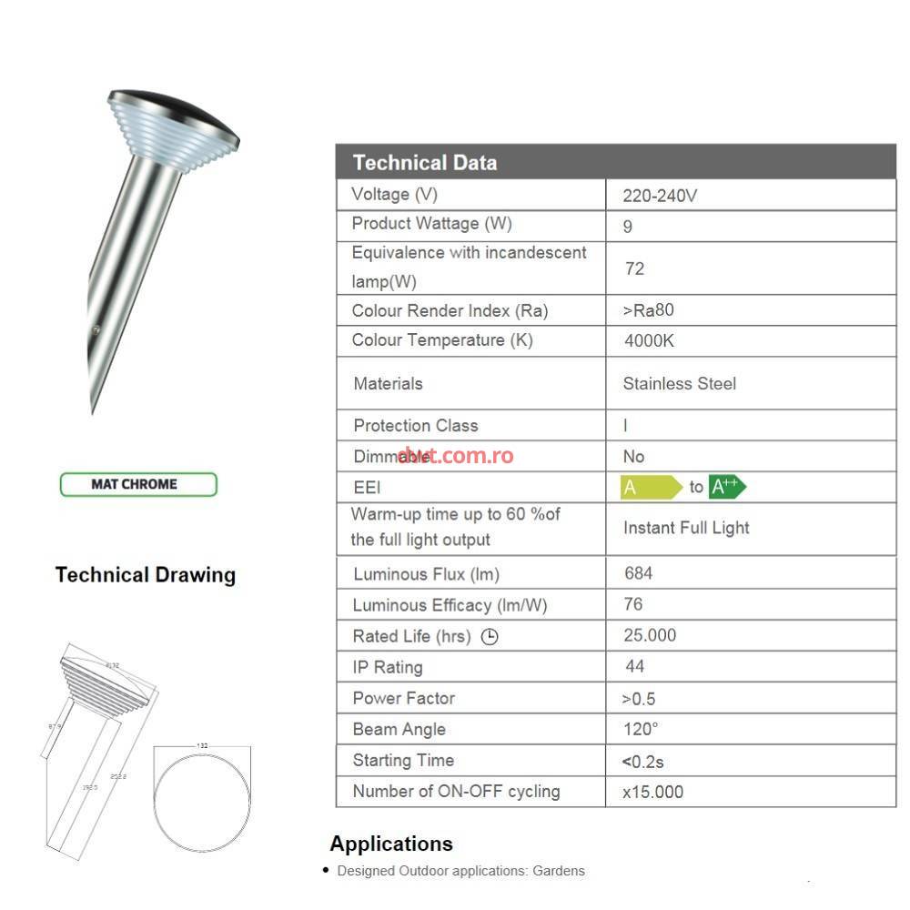 Horoz 076-016-0001 Aplica de exterior Bambu-1, Inox, IP44, Led, max 9W, 684lm, lumina neutral 4000K |