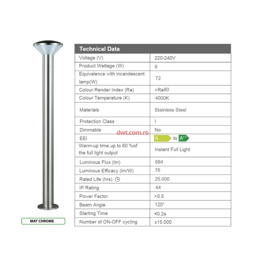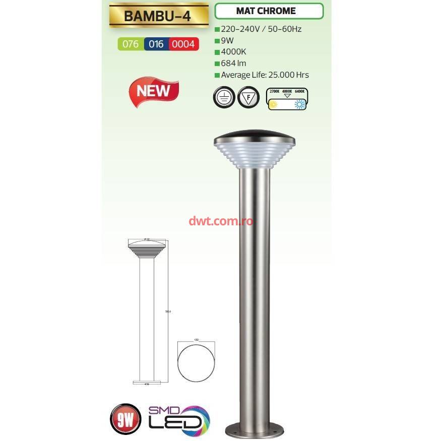 Horoz 076-016-0002 Stalp iluminat exterior Bambu-4, LED, max 9W, Inox, 684 lm, IP44, 4000K, inaltime 500mm |