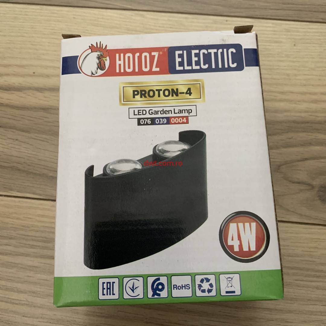 Horoz 076-039-0004/NEGRU Aplica de exterior Proton-4, Aluminiu, putere 4W, lumina neutra 4200K, 360lm, 85-265V, IP65 |