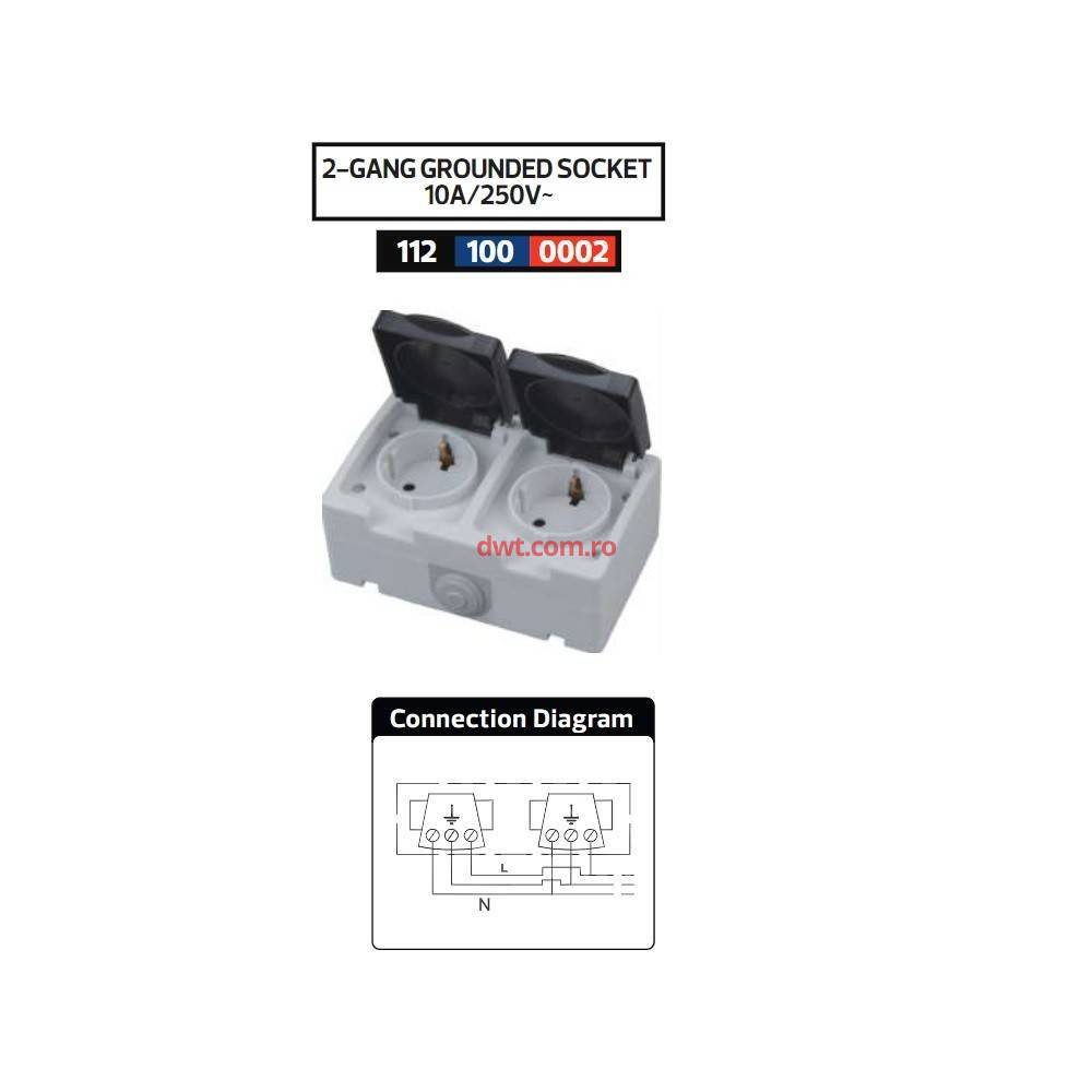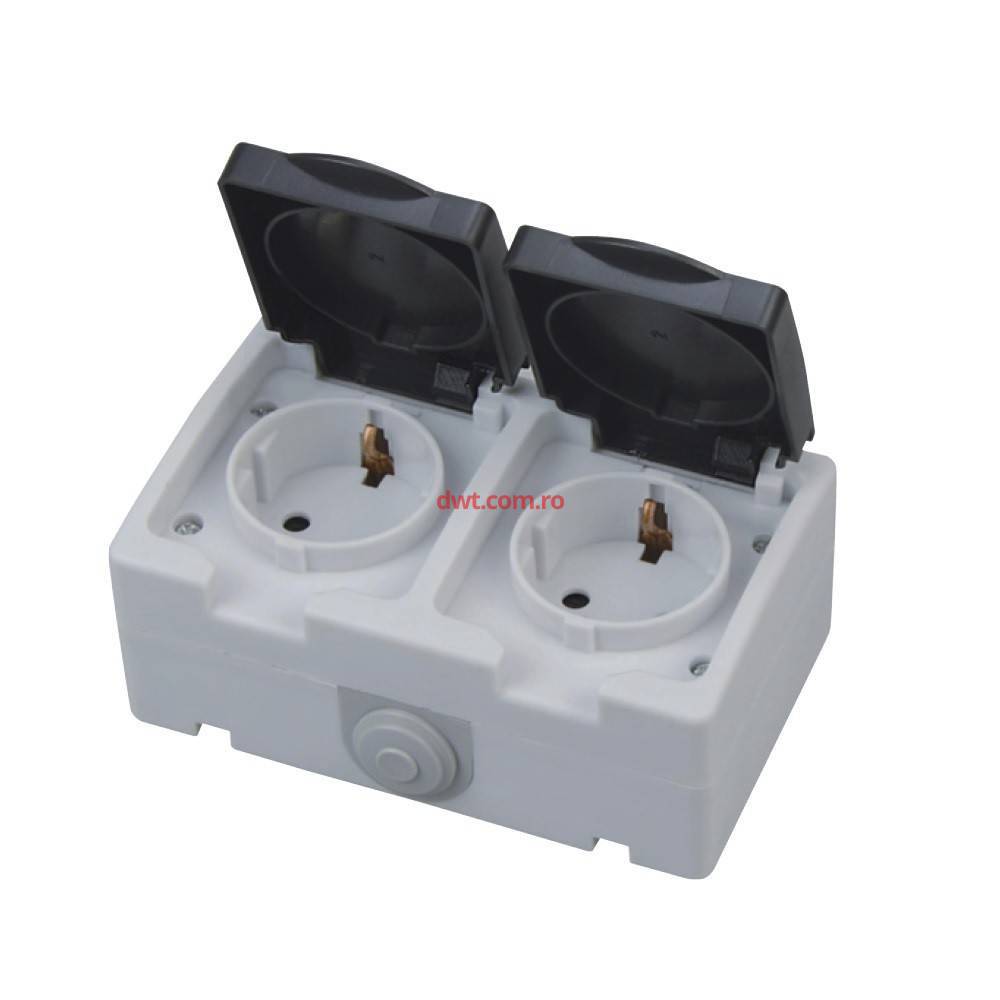 Priza dubla PT, Atom, pentru exterior, IP54, Schuko