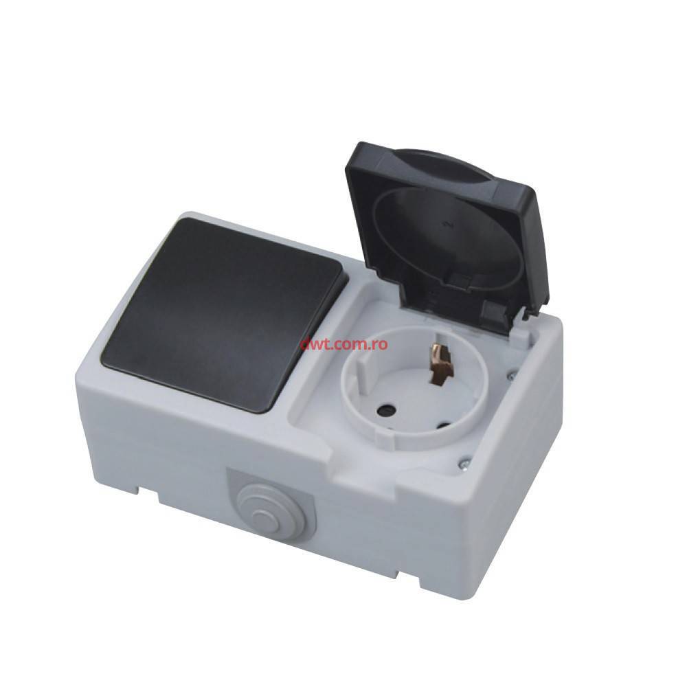 Comanda instant - Horoz 112-100-0003 Corp intrerupator simplu cu priza PT, Atom, pentru exterior, IP54, Schuko