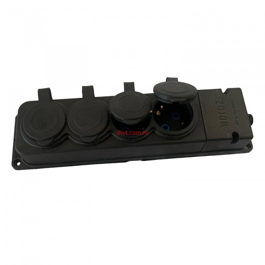 Prelungitor cu 4 prize, Horoz-4, IP44, Schuko, fara cablu