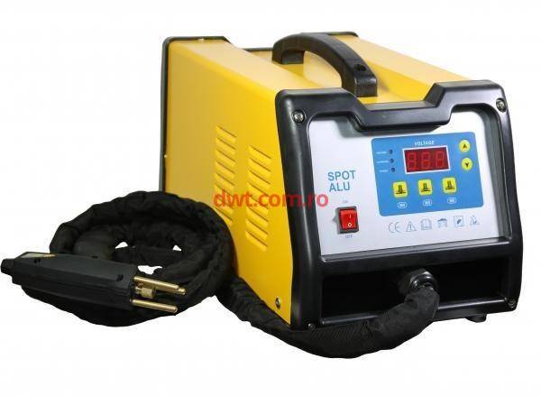 Aparat pentru sudura ALUMINIU cu energie inmagazinata intr-o magazie de condensatoare a bolturilor filetate. Aparatul a fost proiectat si realizat pentru sudura bolturilor filetate feroase si neferoase pe suprafete netratate sau neoxidate din otel, inox, alama si indeosebi ALUMINIU, mai ales In atelierele auto si in domeniile cu lucrari asemanatoare.