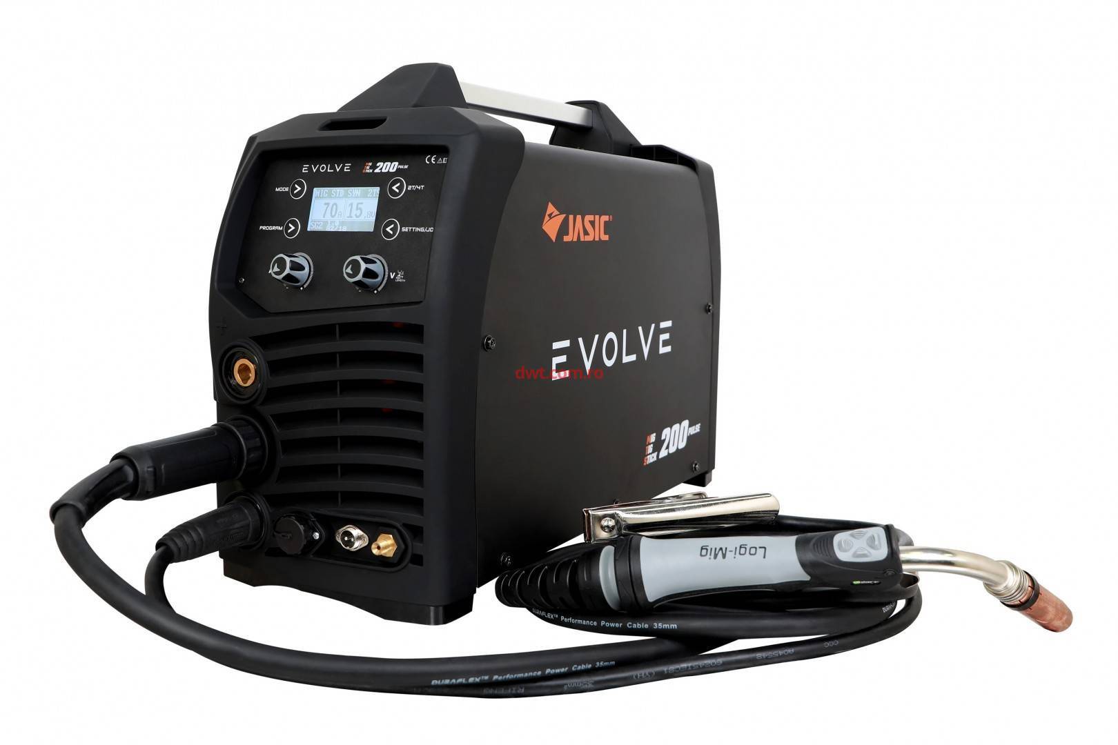MIG 200P EVOLVE este un aparat de sudura conceput special pentru sudura MAG a otelului carbon sau slab aliat cu gaz de protectie CO2 sau amestecuri Argon/CO2 utilizand sarme pline sau cu miez (tubulare).De asemenea, este adecvat pentru sudura MIG a otelurilor inoxidabile cu gaz Argon+ 1-2% oxigen, a aluminiului si CuSi3, cu gaz Argon, utilizand sarme adecvate piesei de sudat. Functionarea SINERGICA asigura setarea rapida si usoara a parametrilor de sudura, garantand intotdeauna un control ridicat al arcului si al calitatii sudurii. Aparatul de sudura este indicat pentru sudura TIG in curent continuu (DC) cu amorsarea arcului prin contact (modalitatea LIFT ARC), potrivita la toate otelurile (carbon, slab aliate si inalt aliate) si la metalele grele (cupru, nichel, titan si aliajele lor) cu gaz de protectie Ar pur (99.9%) sau, pentru utilizari deosebite, cu amestecuri Argon/Heliu. Este indicat si pentru sudura cu electrod MMA in curent continuu (DC) cu electrozi inveliti (rutilici, bazici, celulozici, aluminiu).
