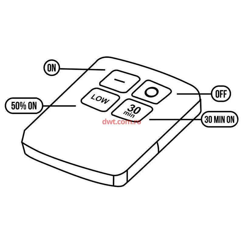 Inclus in colet este o telecomandã, care poate nu numai sã porneascã și sã stingã luminile, dar și sã schimbe luminozitatea luminii și sã aprindã luminile timp de 30 de minute.