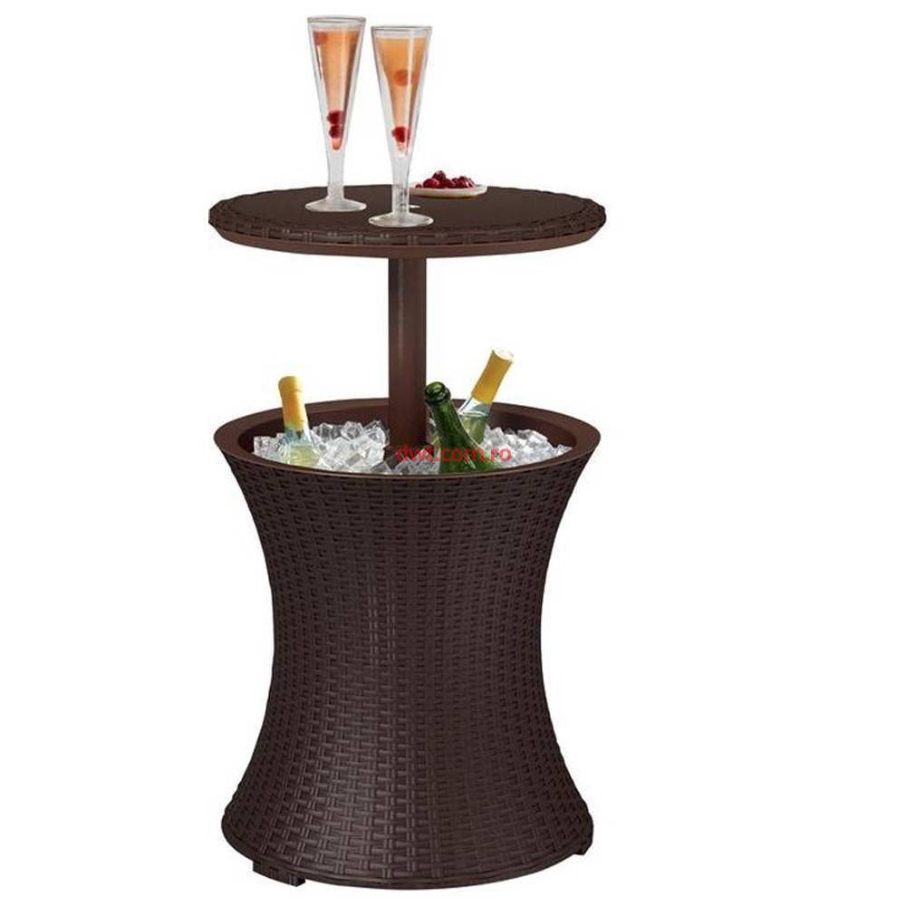 Comanda instant - Keter SK-2171561 Mini bar de gradina multifunctional Keter Cool Bar Rattan, maro, 49.5x49.5x57-82 cm