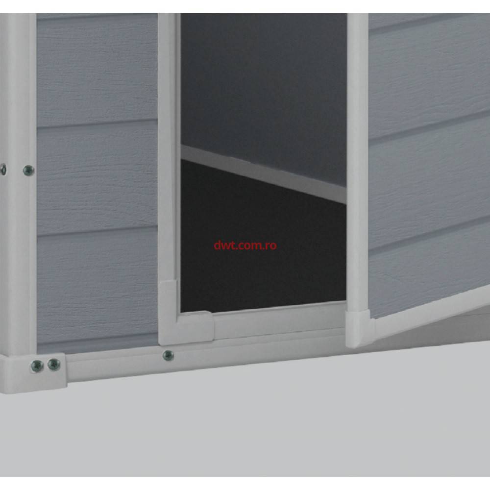 Casuta a fost realizata din plastic care imita structura de lemn natural ceea