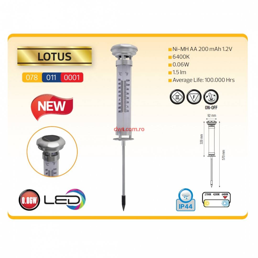 | Comanda instant - Lampa solara cu termometru, Lotus Led, inaltime 570 mm, 0.06 W