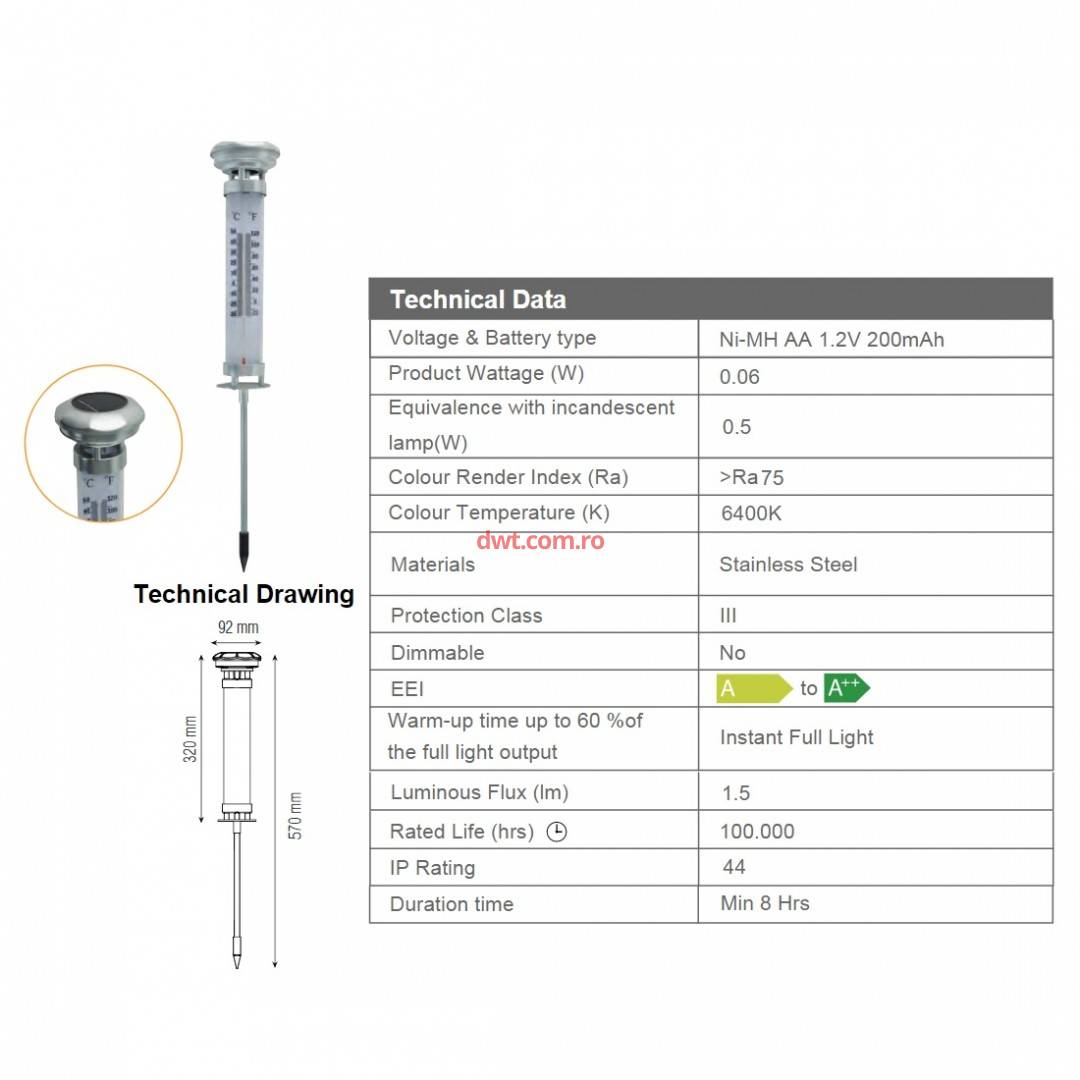 Lampa solara cu termometru, Lotus Led, inaltime 570 mm, 0.06 W |
