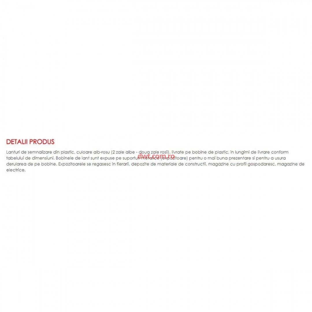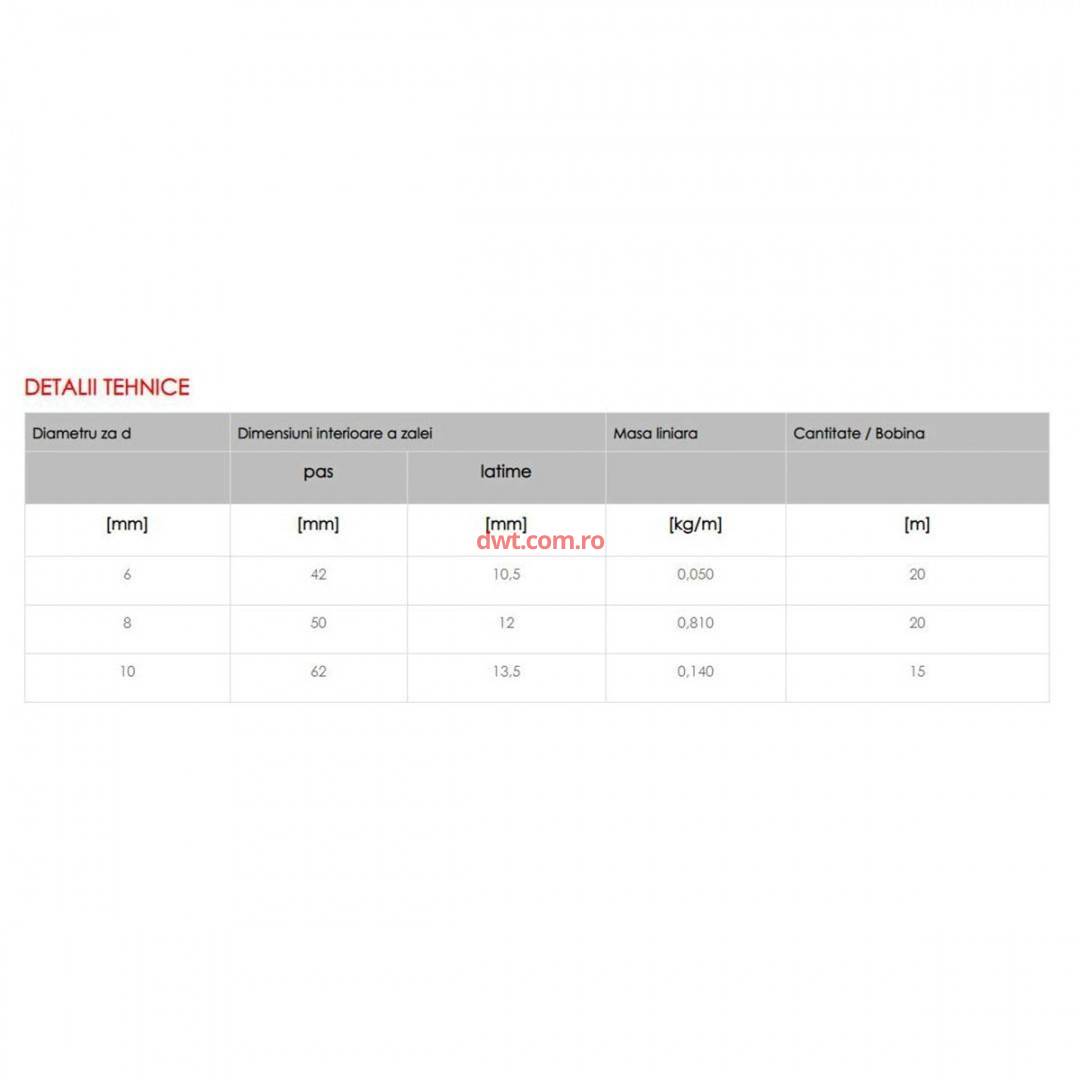 Brand: Micul Fermier Diametru za: 6 mm Dimensiuni intrioare pas P: 42 mm Lungime: 20 m Masa liniara aprox kg 1000m: 0.05 Material: Plastic Tip produs: Lant din plastic |