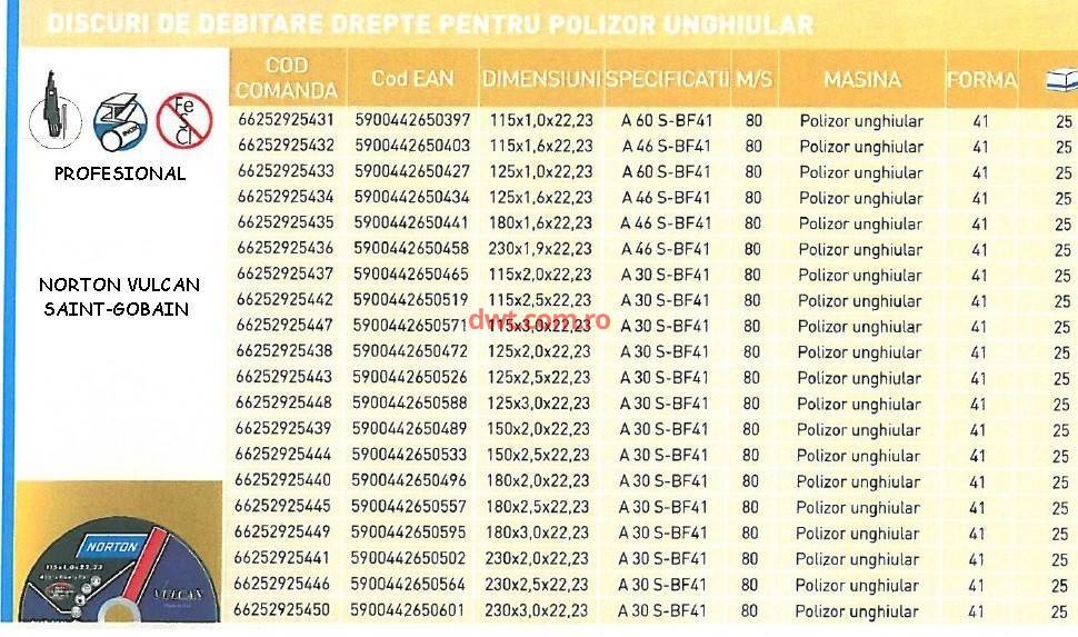 Norton - Saint Gobain 125x1.0x22.3 Disc de debitare metal inox profesional Norton 125x1.0x22.23 |