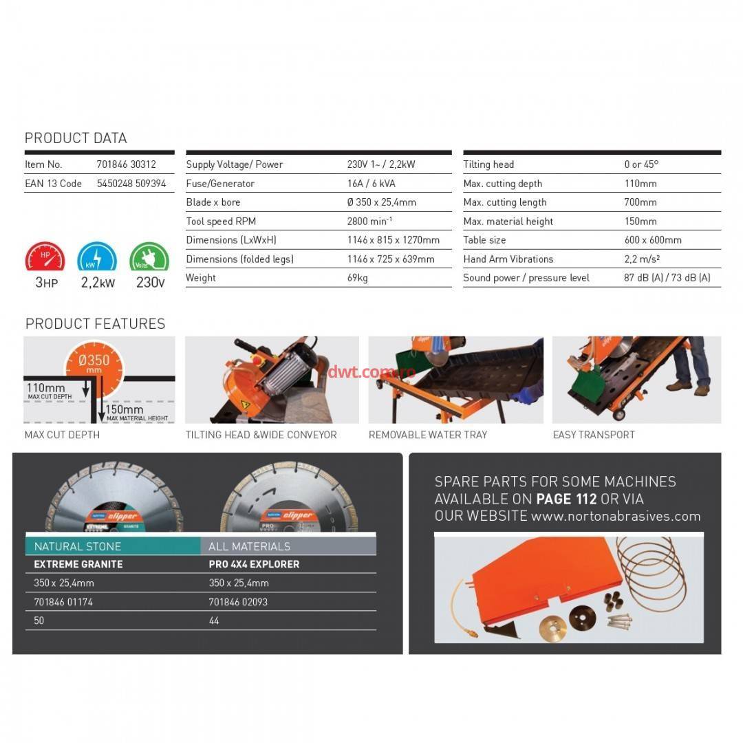 Norton - Saint Gobain CM 351 Masina de taiat zidarie CM351, Norton Clipper, 2.2 kW, diametru disc 350 mm |