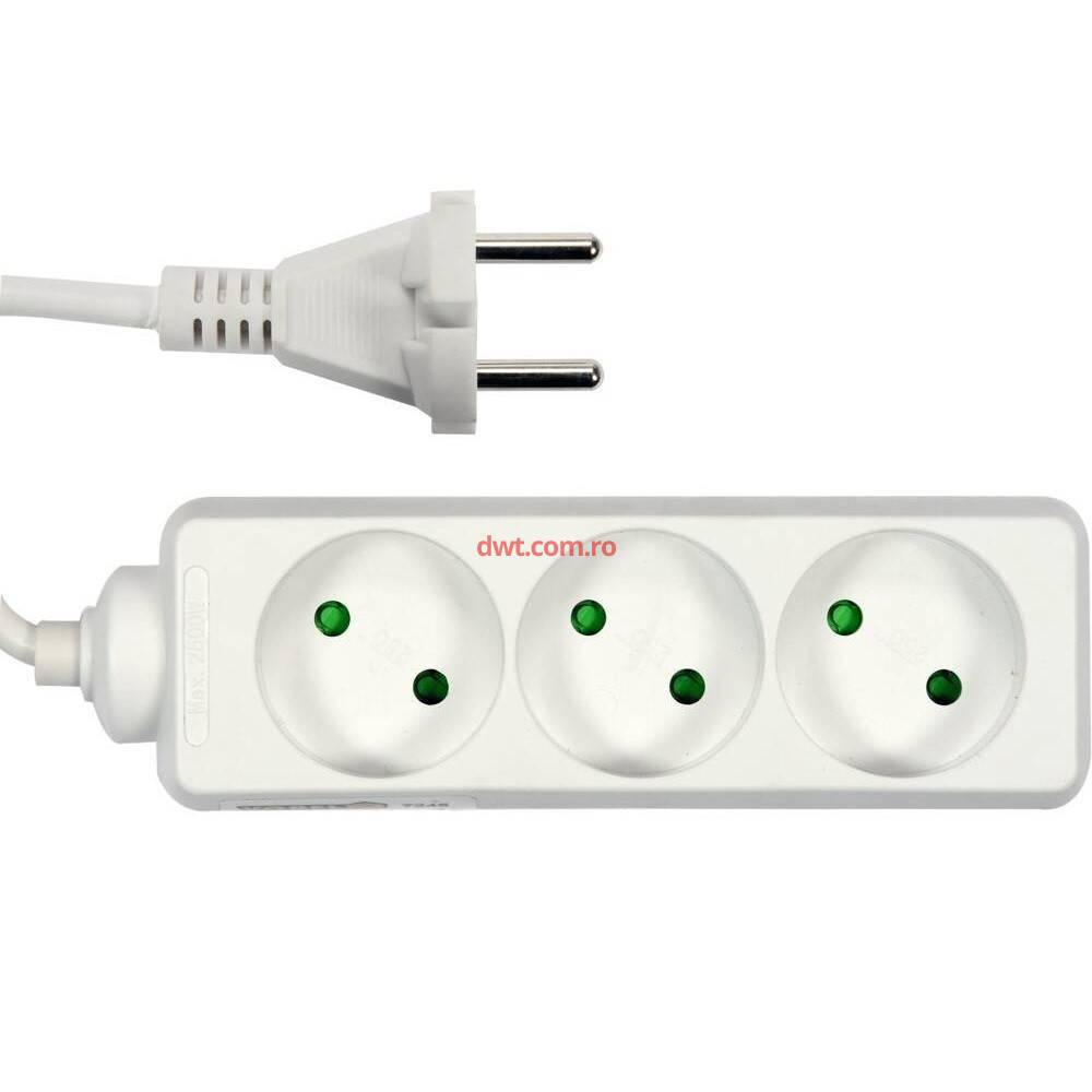Comanda instant - OEM 72484 Prelungitor fara impamantare, 3 locasuri, lungime 1.5 m, Alb, 1 mmp, 10A