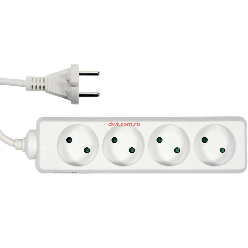 Prelungitor fara impamantare, 4 locasuri, lungime 3 m, Alb,