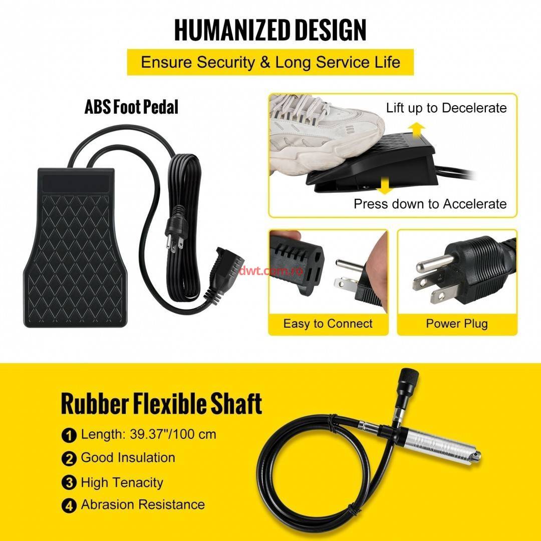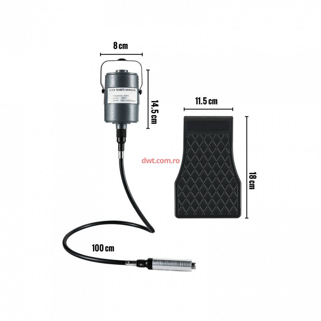 Comanda instant - OEM DMJOC380W-Q8EQ8OYV2 Polizor cu arbore flexibil si pedala, Profesional 380 W, 500-23000 rpm, lungime 100 cm, Gama mandrinei 0.3-6.5 mm
