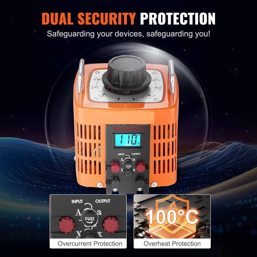 Transformator de tensiune variabila, 0-300 V, 6.6 A, putere 2000 VA, afisaj Led, alimentare prin cablaj Flexibilitate in controlul tensiunii: reglati fara efort tensiunea de iesire pentru un control perfect al luminozitatii, temperaturii, vitezei si multe altele, chiar la indemana dvs. Fie intr-un cadru acasa, la birou sau industrial, regulatorul nostru ofera un control precis pentru a satisface diverse nevoi, asigurand o experienta mai confortabila si mai eficienta. (Trebuie sa va furnizati propriul fir de 2,5㎡ sau mai gros pentru a fi utilizat cu acest produs.) Transformator variabil 2000VA: Putere: 2000VA, Tensiune de intrare: AC 230V/50Hz, Curent maxim de iesire: 6.6A, Gama de tensiune de iesire: 0-300V. Pentru o experienta optima, va recomandam sa selectati un transformator variabil cu o capacitate de putere cu cel putin 25% mai mare decat puterea totala a dispozitivelor dumneavoastra. Acest lucru asigura ca echipamentul dumneavoastra functioneaza fara probleme in orice conditii, oferindu-va un control si o eficienta de neegalat. Protectii multiple de securitate: Transformatorul nostru de tensiune variabila este conceput pentru securitatea dumneavoastra, avand sigurante si un comutator de control termic, extinzand protectie neintrerupta echipamentului dumneavoastra. Ideal pentru aplicatii casnice si industriale, transformatorul nostru creeaza un mediu de tensiune sigur si stabil pentru toate dispozitivele dumneavoastra. Construit pentru a dura, certificat CE: Experimentati asigurarea calitatii certificate CE cu regulatorul nostru de tensiune variabila. Construit cu o carcasa metalica ingrosata, ofera durabilitate sporita si rezistenta la socuri. In plus, aceste orificii de ventilatie permit o disipare rapida a caldurii pentru a evita supraincalzirea. Bazati-va pe transformatorul nostru pentru o solutie robusta, care rezista testului timpului. Precizie la indemana: transformatorul nostru de tensiune variabila are un afisaj digital LCD care arata tensiunea curenta de iesire. Designul sau cu iluminare de fundal asigura claritate si vizibilitate, zi sau noapte. Reglarea tensiunii este usoara cu butonul montat in partea de sus, care este proiectat pentru confort si flexibilitate. Placa de scara metalica prezinta marcaje clare, usor de citit, permitandu-va sa selectati rapid tensiunea exacta de care aveti nevoie. Putere maxima de iesire 2000VA Curent maxim de iesire 6,6 A Tensiune de intrare 230V, 50Hz Tensiune de iesire0V-300V Dimensiuni produs (L x l x H) 221 x 171 x 195 mm Greutate 8,15 kg |