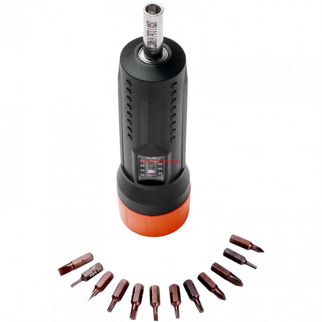 Comanda instant - OEM NJLSDCKKY107046H7V0 Surubelnita dinamometrica, Cuplu reglabil 1.13-7.91 Nm, 1/4", Crom Vanadiu, 12 biti