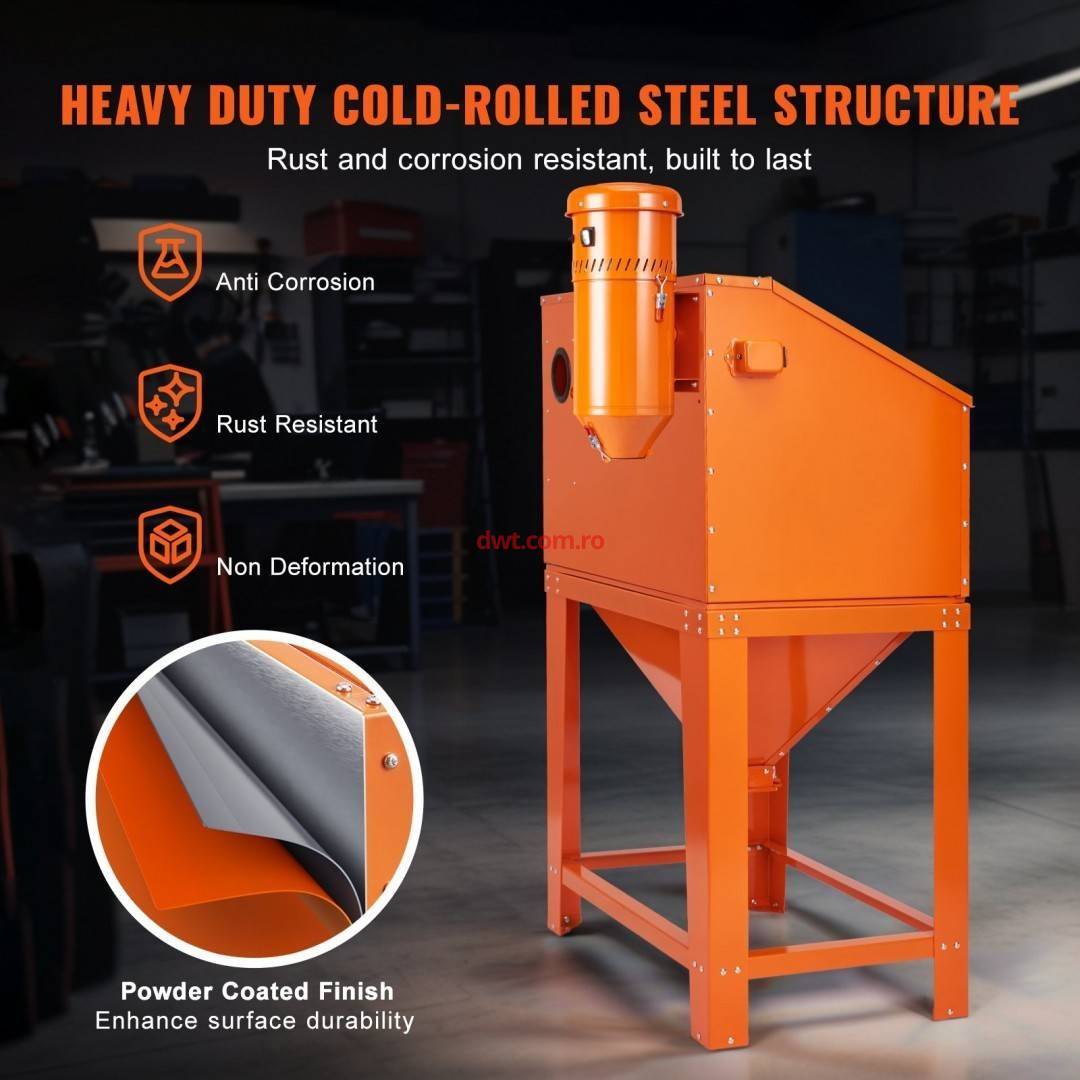 pentru sarcini grele, dulapul de sablare si colectorul de praf se lauda cu