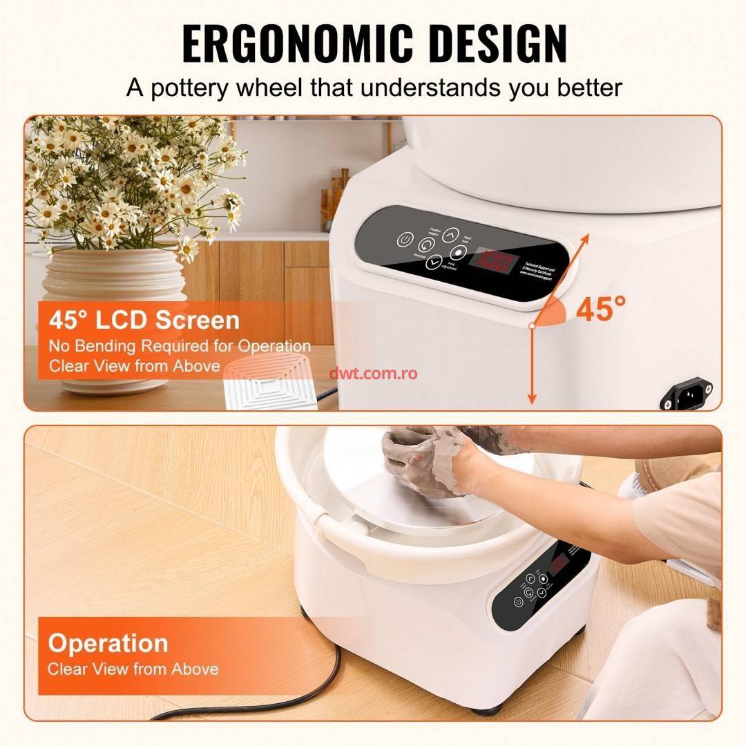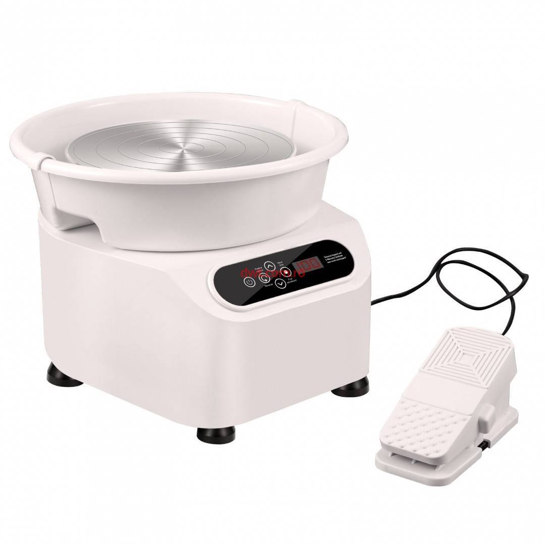 OEM ZQLPJXS11YC3GD3ZZV2 Roata de olarit profesionala electrica, cu pedala, 350 W, diametru placa 28 cm, Ecran tactil, 50-300 rpm, Alb, max 3 kg argila |