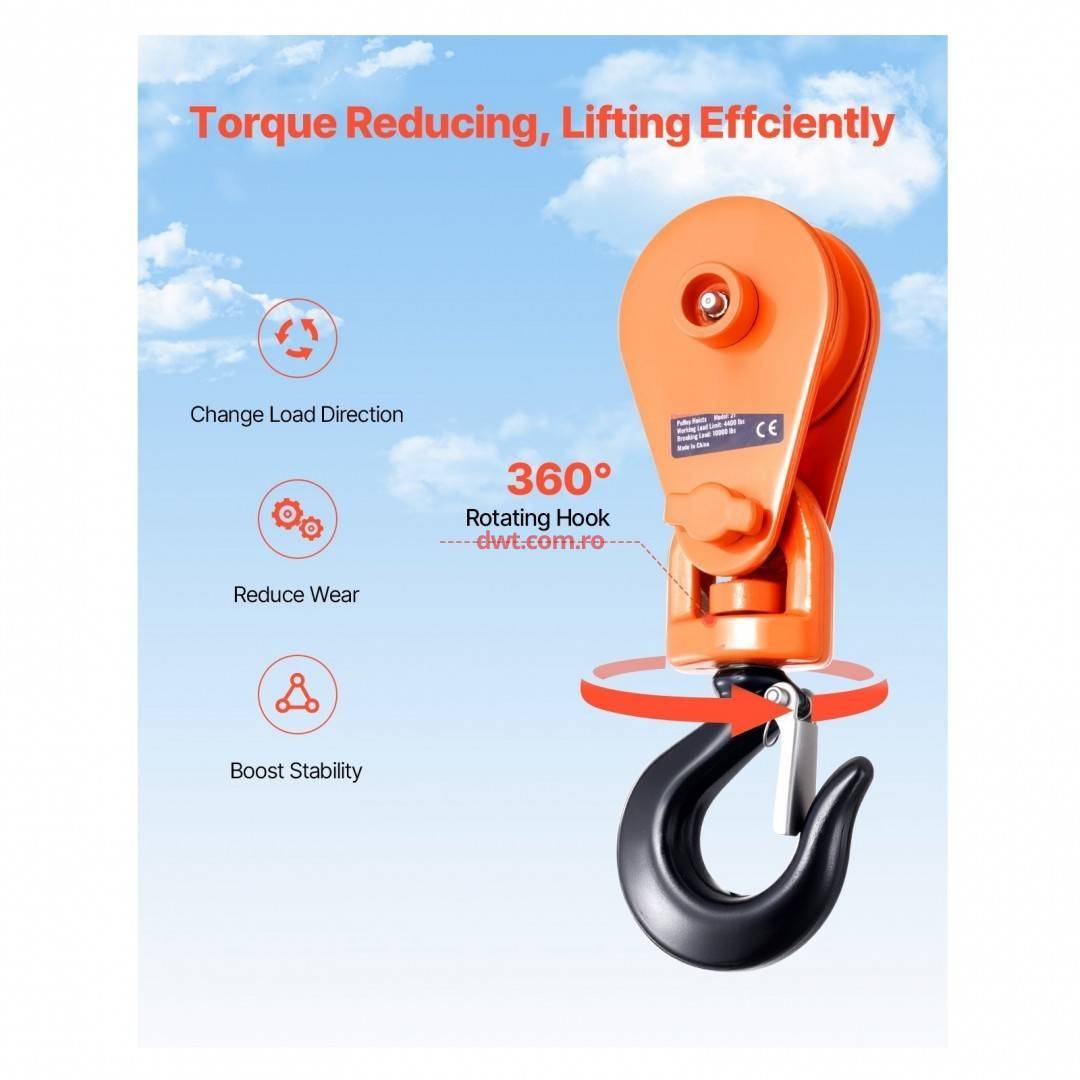 cu un carlig rotativ la 360° care se ajusteaza automat la unghiul incarcaturii