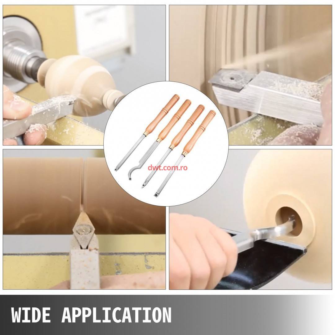 Set 4 dalti pentru strunguri lemn, Otel HSS, maner lemn,